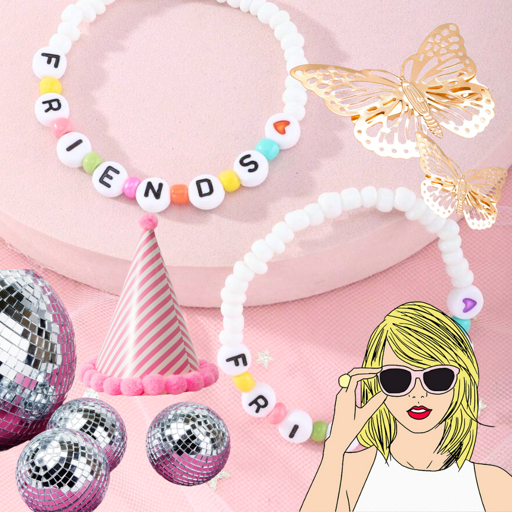 Each child will decorate their very own funfetti cookie cake inspired by Taylor and the Eras Tour, complete with an edible friendship bracelet, disco balls and butterflies.